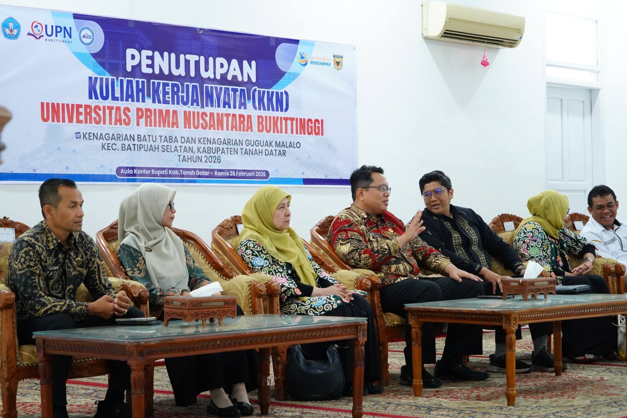 Tanah Datar – Sebanyak 201 mahasiswa Universitas Prima Nusantara (UPN) Bukittinggi menutup masa Kuliah Kerja Nyata (KKN) Tahun Akademik 2025/2026 di Kecamatan Batipuh Selatan. Kegiatan tersebut ditandai dengan acara serah terima mahasiswa kembali dari lokasi pengabdian ke pihak kampus yang dilaksanakan di Aula Kantor Bupati di Pagaruyung, Kamis (26/2/2026)