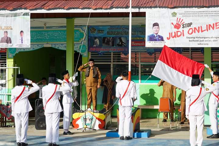 “Saya berdiri dihadapan kita semua, merupakan bentuk nyata perhatian dan sinergitas dengan jajaran Kemenag, karena Madrasah Aliyah Negeri (MAN) merupakan tanggungjawab Kemenag,” kata Bupati Eka Putra dalam sambutannya saat jadi Inspektur upacara, Senin (22/7/2024).