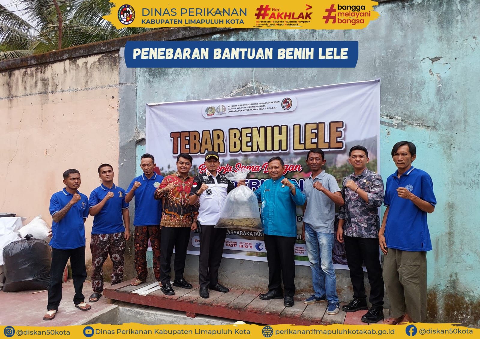 Lima Puluh Kota, 15 November 2024 – Dinas Perikanan Kabupaten Lima Puluh Kota bekerja sama dengan Lapas Kelas III Suliki melakukan penebaran benih lele sebanyak 2200 benih Ikan Lele beserta sepasang Indukan lele di Branggang Lapas Suliki. Pemberian bantuan ini dalam rangka meningkatkan Sinergitas antar Lima Puluh Kota serta mendukung kegiatan Ketahan Pangan Lapas Suliki. Bantuan benih tersebut di tebarkan langsung oleh Kepala Dinas Perikanan Kabupaten Lima Puluh Kota, Bapak Mohd. Siswanto, S.Pi, M.Si serta bapak Kalapas Kelas III Suliki, Bapak Kamesworo.