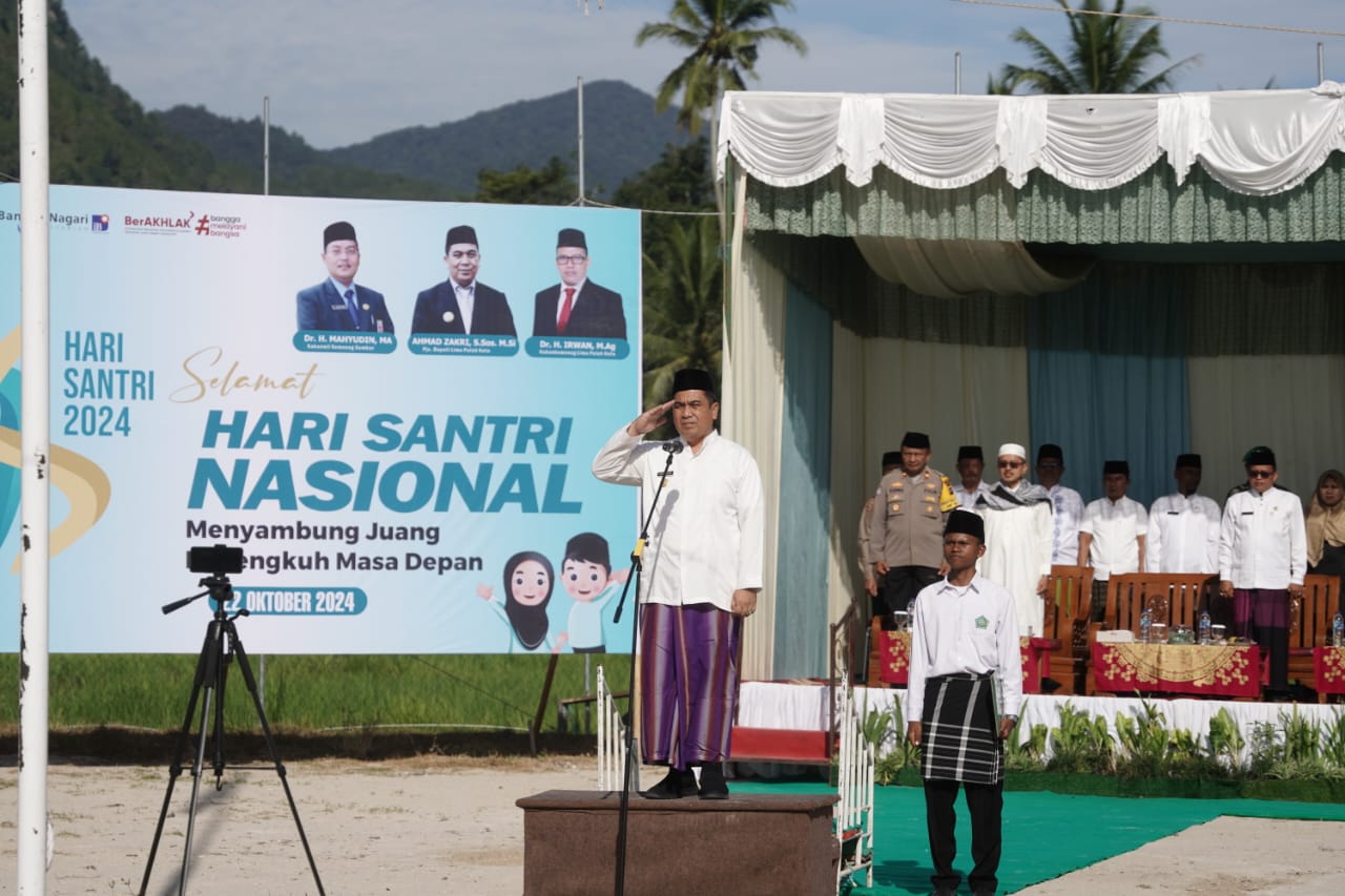 Lima Puluh Kota |Upacara Peringatan Hari Santri Nasional 2024 berlangsung khidmat di Kabupaten Lima Puluh Kota pada Selasa (22/10/2024). Dipusatkan di Pondok Pesantren Al-Manar, Nagari Batu Ampa, Kecamatan Akabiluru, Apel dipimpin oleh Pjs.Bupati Ahmad Zakri dan diikuti oleh Kepala Kantor Kemenag Irwan, pimpinan-pimpinan pondok pesantren serta sejumlah perwakilan santri di Lima Puluh Kota. Peringatan tahun ini mengusung tema “Menyambung Juang Merengkuh Masa Depan” yang diinisiasi oleh Kementerian Agama.