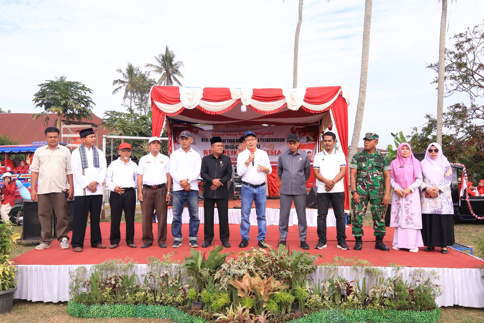 Payakumbuh – Ketua DPRD Kota Payakumbuh Wirman Putra, mengapresiasi kekompakan masyarakat Kecamatan Lamposi Tigo Nagori (Latina) dalam menyemarakkan peringatan HUT RI ke-80 yang dipusatkan di Lapangan Bola Kaki PORSID Sungai Durian, Kamis (21/08/2025).