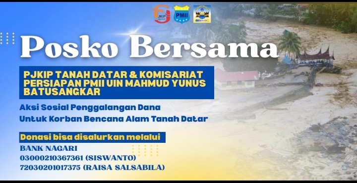 Tanah Datar – Perkumpulan Jurnalis Keterbukaan Informasi Publik (PJKIP) Tanah Datar bekerja sama dengan Pergerakan Mahasiswa Islam Indonesia (PMII) Komisariat UIN Batusangkar mendirikan *Posko Bersama Aksi Sosial* guna membantu korban bencana alam yang melanda Malalo, Kabupaten Tanah Datar.