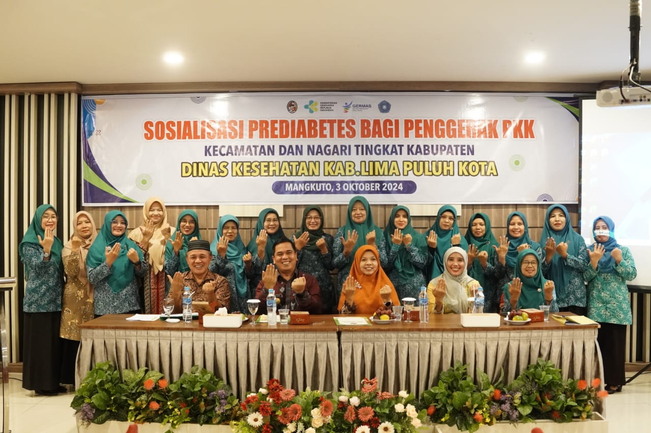 Lima Puluh Kota | Pjs. Bupati Lima Puluh Kota Ahmad Zakri mengatakan pentingnya deteksi dini dan menjaga pola hidup sedari kanak-kanak dalam mencegah penyakit diabetes. Untuk itu Ia menekankan peran PKK dalam menjaga pola hidup sehat yang dimulai dari keluarga sekaligus mendorong masyarakat untuk lebih waspada terhadap penyakit diabetes, mengingat penyakit tersebut seringkali berkembang tanpa gejala awal yang jelas. “Pendidikan dan kesadaran kesehatan harus dimulai dari lingkungan terdekat, yaitu keluarga dan setelahnya baru disosialisasikan kepada masyarakat di Kecamatan hingga Nagari,” ucap Pjs. Bupati Lima Puluh Kota Ahmad Zakri saat membuka sosialisasi prediabetes bagi anggota penggerak PKK kabupaten, kecamatan, hingga nagari se Kabupaten Lima Puluh Kota, Kamis, (03/10/2024) di Hotel Mangkuto. Kegiatan yang bertujuan untuk meningkatkan pemahaman masyarakat tentang bahaya diabetes beserta pencegahan, pengendalian dan tata laksana diet bagi para penderita diabetes itu dihadiri oleh Ketua TP PKK Juwita Ahmad Zakri, Kepala Dinas Kesehatan Yulia Masna, dan Ketua TP PKK dari 13 Kecamatan Lima Puluh Kota.