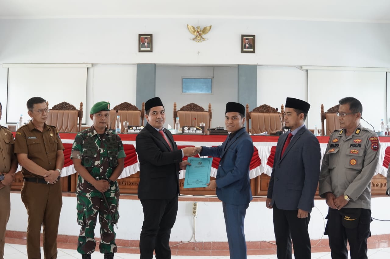 Lima Puluh Kota |Pembangunan Kabupaten Lima Puluh Kota 20 tahun kedepan yang dituangkan dalam RPJPD (Rencana Pembangunan Jangka Panjang Daerah) 2025-2045 masih berfokus pada perwujudan Lima Puluh Kota madani, maju, berbudaya, dan berkelanjutan. Untuk mensukseskan visi itu, Pemerintah Kabupaten Lima Puluh Kota telah merumuskan sejumlah misi meliputi, pembangunan sumber daya manusia yang berkualitas dan berdaya saing, menciptakan transformasi ekonomi berkelanjutan, mewujudkan tata kelola yang profesional, transparan, akuntabel, dan inovatif, dan memantapkan keamanan daerah tangguh, masyarakat damai, dan inklusif. Misi lain dalam mensukseskan visi itu diantaranya memantapkan ketahahan sosial budaya, pembangunan wilayah secara merata, pembangunan sarana prasarana ramah lingkungan dan mewujudkan kesinambungan pembangunan. Demikian pokok pikiran Pjs. Bupati Lima Puluh Kota Ahmad Zakri saat menyampaikan Nota Bupati terhadap RPJPD Kab. Lima Puluh Kota 2025-2045 dan Penandatangan Pakta Integritas terhadap RPJPD Kabupaten Lima Puluh Kota antara DPRD dengan Pemerintah Daerah di Aula DPRD, Bukik Limau, Senin, (07/10/2024). Sidang yang dipimpin oleh Ketua DPRD Lima Puluh Kota Doni Ikhlas itu turut dihadiri Dandim 0306/50 Kota Letkol. Ucok Namara bersama unsur Forkopimda, Anggota DPRD, Asisten II Eki Hari Purnama, dan sejumlah Kepala Perangkat Daerah.