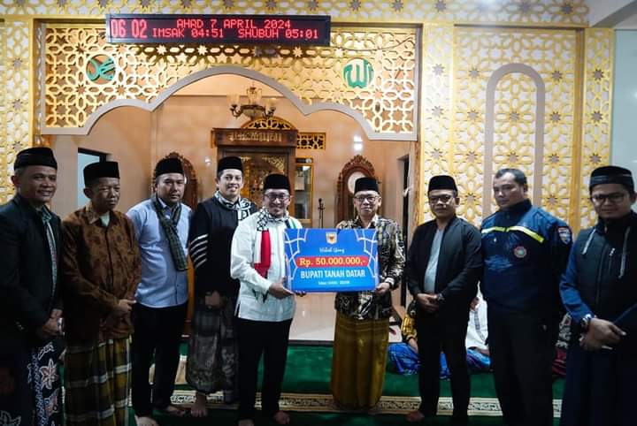 Pada kesempatan tersebut Bupati Eka Putra juga memberikan bantuan sebesar Rp50 juta dan bantuan kegiatan remaja masjid sebesar Rp1 juta.